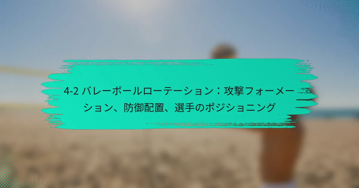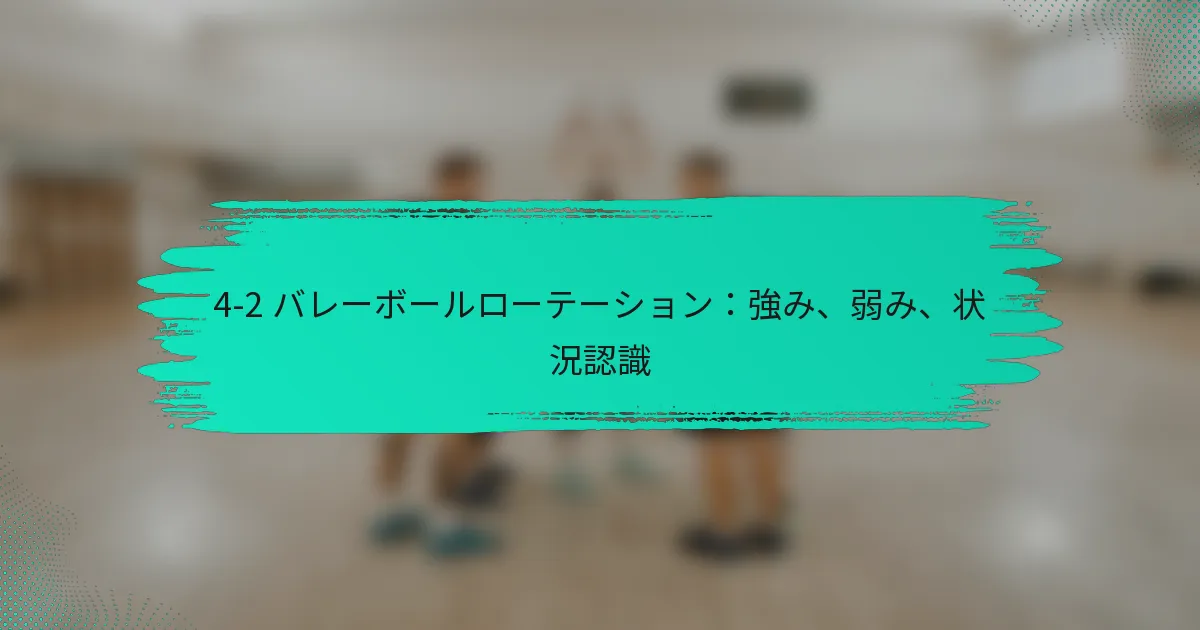 4-2バレーボールローテーション戦略は、4人の前衛選手と2人のセッターを含み、攻撃と防御のバランスの取れたアプローチを可能にします。このフォーメーションは、ボールを効率的に配分し、相手に対してミスマッチを活用できる強力なセッターを持つチームに特に効果的です。
