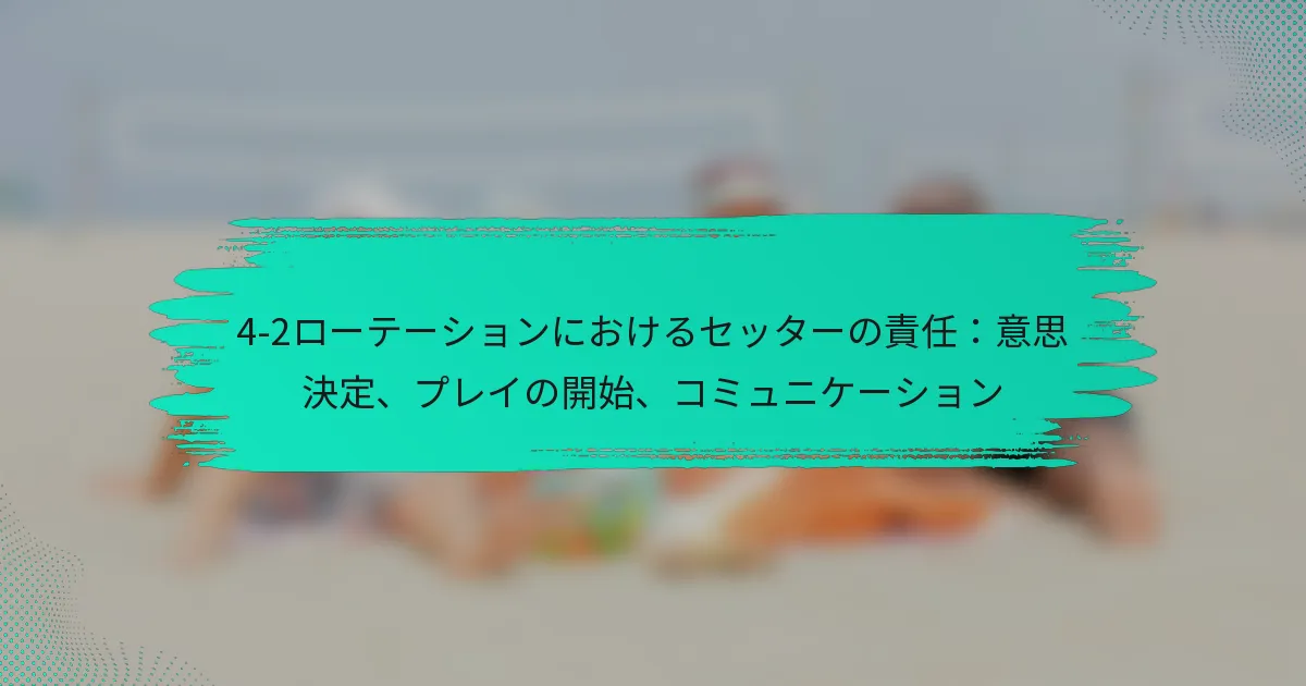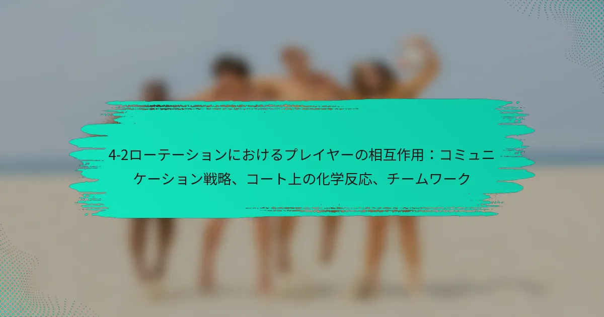 4-2ローテーション戦略では、すべての選手が自分の役割と責任を認識するためにコミュニケーションが重要です。選手はボールを呼び込んだり、自分の意図を合図したりする必要があり、これにより迅速なプレー中の混乱を防ぐことができます。明確な口頭および非言語的な合図を確立することで、チームワークと調整が向上します。