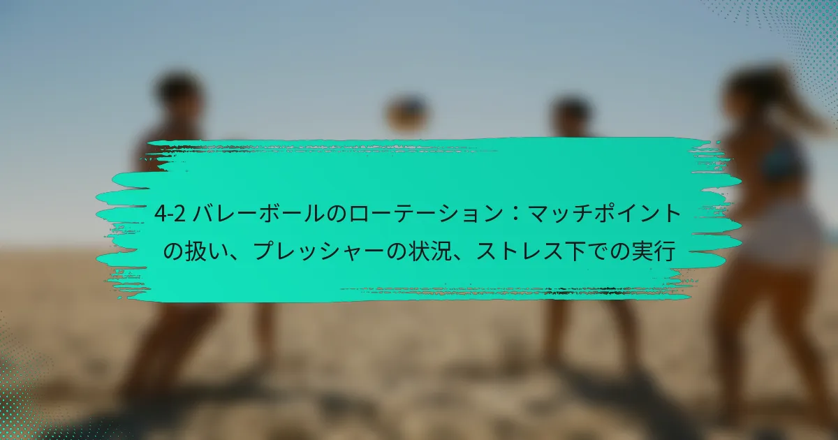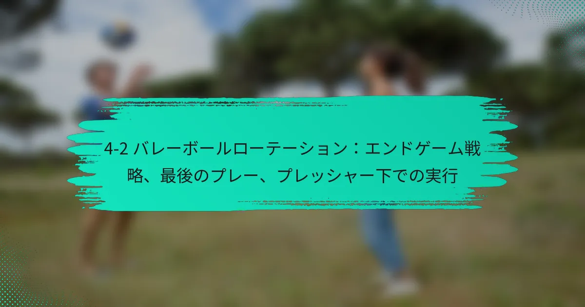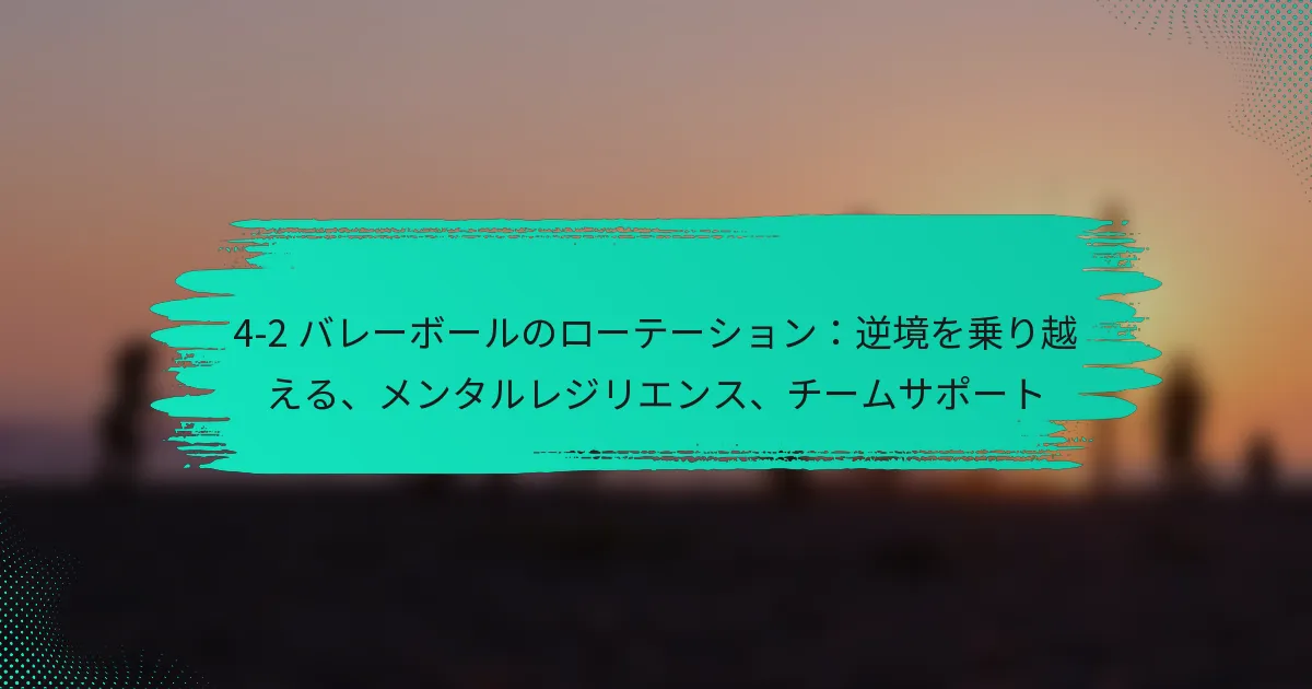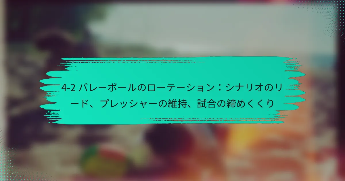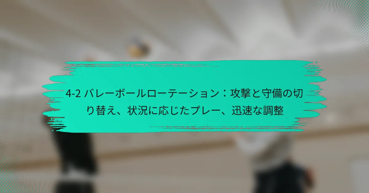 4-2ローテーションは、さまざまなスポーツで使用される戦術的なフォーメーションで、1つのポジションに4人の選手、別のポジションに2人の選手が配置されることが特徴です。このセットアップは、攻撃と防御のバランスを取ることを可能にし、ゲームプレイ中のチームパフォーマンスを最適化します。