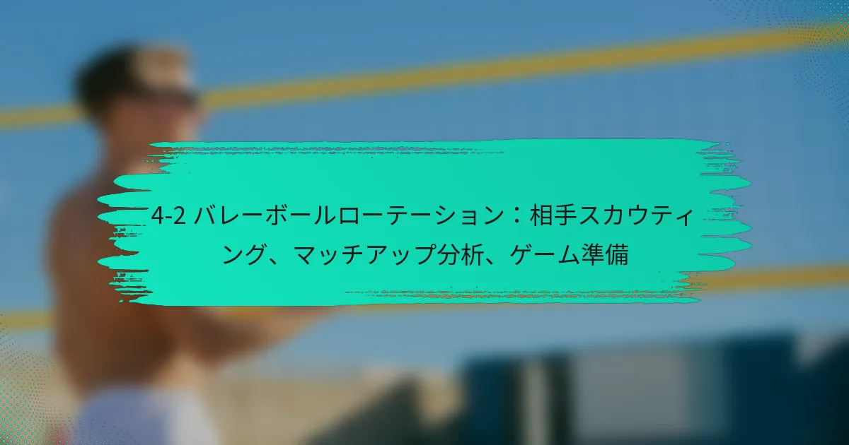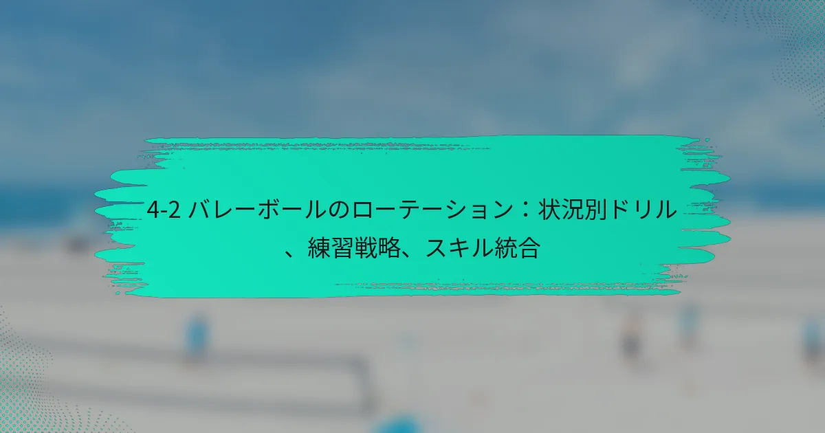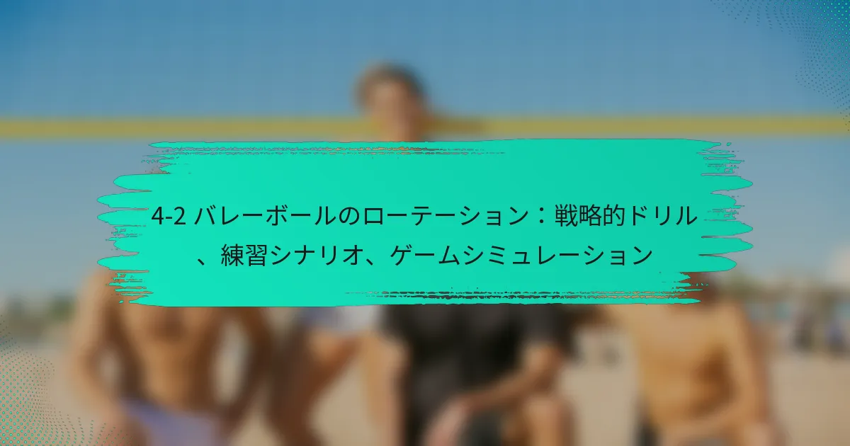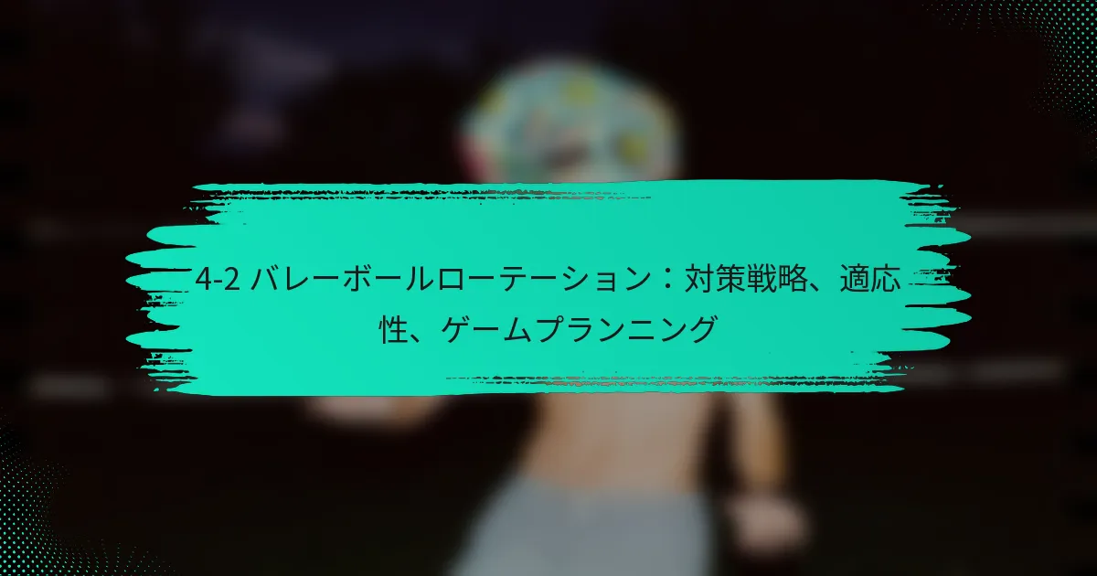 4-2バレーボールローテーションは、4人のフロントロー選手と2人のセッターを活用する戦略的なフォーメーションであり、ダイナミックな攻撃と防御のアプローチを促進します。安定したセッティングなどの利点がある一方で、チームはバックローの防御における脆弱性などの限界にも注意を払う必要があります。効果を最大化するために、チームは相手の戦術に適応するカウンター戦略を開発し、弱点を突いて競争力を維持することが重要です。 4-2バレーボールローテーションとは何か、どのように機能するのか? 4-2バレーボールローテーションは、4人のフロントロー選手と2人のセッターを使用するシステムであり、効果的な攻撃戦略と防御カバーを可能にします。このローテーションは、迅速な移行と選手の多様性を強調しており、強力なセッターと適応力のある選手を持つチームに適しています。 4-2ローテーションの定義と概要 4-2ローテーションは、フロントローでプレーする2人のセッターが特徴で、ボールをセットしながら攻撃にも貢献します。このシステムは、攻撃の機会を最大化しつつバランスの取れた防御を維持したいチームによってよく採用されます。ローテーションは通常、選手がコート上の6つのポジションを回り、各選手が攻撃と防御の役割を体験することを保証します。 このセットアップでは、2人のセッターがポジションを交代し、継続的なプレーを可能にし、ダウンタイムを最小限に抑えます。フロントロー選手は攻撃に集中し、バックロー選手は防御とサーブレシーブをサポートします。このダイナミックさはゲームを流動的かつ適応可能に保ち、さまざまなプレースタイルに対応します。 4-2セットアップにおける選手のポジションと役割 4-2ローテーションでは、選手の役割は明確でありながら柔軟です。2人のセッターは攻撃を指揮し、ボールの配置に関する迅速な決定を下し、攻撃を促進します。残りの4人の選手は通常、2人のアウトサイドヒッター、1人のミドルブロッカー、1人のライトサイドヒッターで構成され、それぞれプレー中に特定の責任を持ちます。 セッター:攻撃をコントロールし、プレーをセットアップし、ネットをカバーします。 アウトサイドヒッター:左側から攻撃し、防御を行い、サーブレシーブをします。 ミドルブロッカー:中央からのブロックと迅速な攻撃に集中します。 ライトサイドヒッター:右側から攻撃し、ブロックをサポートし、防御を行います。 各選手は多様性を持つ必要があり、ゲームの流れや相手の戦略に応じて役割を切り替える必要があります。この適応性は、効果的な4-2ローテーションを維持するために重要です。 プレー中の主要な動きと責任 4-2ローテーションにおける主要な動きは、攻撃と防御の間の迅速な移行を含みます。選手は、自分のポジショニングと責任を意識する必要があり、特にサーブレシーブや防御プレー中に重要です。セッターは、スムーズなボール配分と攻撃の実行を確保するために、チームメイトと効果的にコミュニケーションを取る必要があります。 プレー中、フロントロー選手は攻撃とブロックに集中し、バックロー選手は防御とサーブレシーブに集中します。選手は、カバーを最大化し、相手が利用できる隙間を最小限に抑えるために、適切な間隔とポジショニングを維持することが不可欠です。 ローテーションを示す視覚的補助具と図 図やチャートなどの視覚的補助具は、4-2ローテーションの理解を大いに高めることができます。図は通常、プレーの異なるフェーズにおける選手のポジションを示し、セッターと攻撃者の役割を強調します。これらのビジュアルは、選手やコーチがローテーションのダイナミクスをより効果的に把握するのに役立ちます。 例えば、図はコートをゾーンに分け、サーブレシーブや典型的な攻撃プレー中に各選手がどこに位置すべきかを示すことがあります。このような補助具は、トレーニングセッションにおいて非常に貴重であり、チームが戦略を練習し、洗練するのを可能にします。 他のバレーボールローテーションシステムとの比較 5-1や6-2などの他のローテーションシステムと比較すると、4-2ローテーションは明確な利点と欠点を提供します。5-1システムは、すべてのポジションでプレーする1人のセッターを使用し、調整を簡素化しますが、セッティングに関与する選手の数が制限されます。対照的に、6-2システムは3人のフロントローセッターを特徴とし、より多くの攻撃オプションを提供しますが、より複雑なローテーションが必要です。 ローテーションシステム セッター フロントロー選手 主な利点 4-2 2 4 バランスの取れた攻撃と防御 5-1 1 5 簡素化されたプレー 6-2 3…