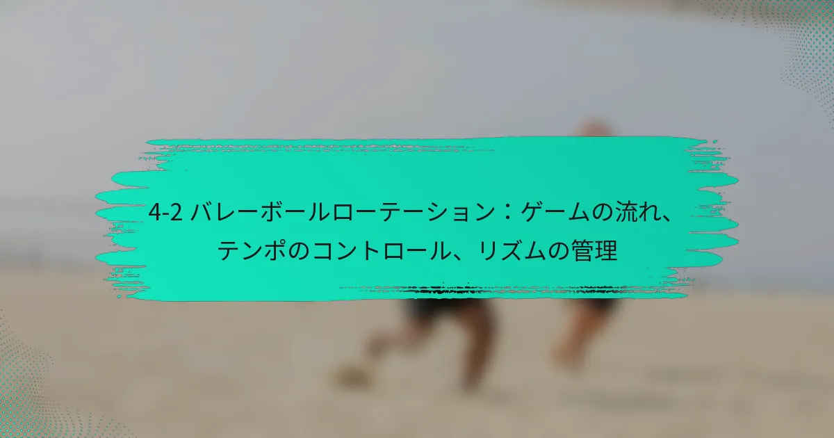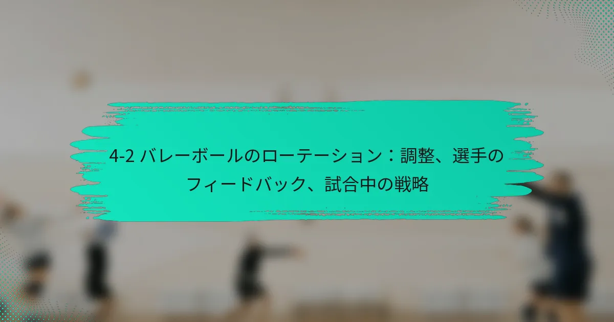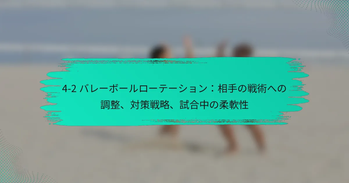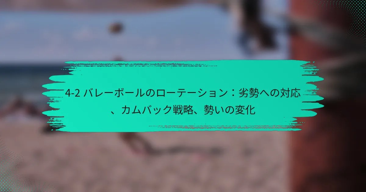 4-2バレーボールローテーションシステムは、攻撃力と防御の安定性を強調した動的なフォーメーションで、4人のフロントローアタッカーと2人のセッターで構成されています。チームが劣勢に直面した際には、戦略的な調整を行い、コミュニケーションを強化してコントロールを取り戻し、勢いを変えることができ、効果的なカムバック戦略への道を開きます。心理的なレジリエンスと戦術的なプレイに焦点を当てることで、チームはタイムアウトやその他のテクニックを活用して回復し、自分たちに有利な状況を作り出すことができます。 4-2バレーボールローテーションシステムとは? 4-2バレーボールローテーションシステムは、4人のフロントローアタッカーと2人のセッターを利用するフォーメーションです。この戦略は、堅実な防御を維持しながら攻撃能力を最大化するように設計されており、さまざまなスキルレベルのチームに人気があります。 4-2ローテーションの定義と構造 4-2ローテーションは、バックローでプレイする2人のセッターで構成されており、フロントローでの強力な攻撃の存在を可能にします。このフォーメーションは、さまざまなポジションから攻撃できる4人のヒッターを特徴としており、多様な攻撃オプションを生み出します。このセットアップは、迅速な攻撃と多様なプレイを重視するチームに特に効果的です。 このシステムでは、選手はコート上の6つのポジションを回転し、各選手が攻撃と防御の両方に貢献する機会を持つことが保証されます。ローテーションは、攻撃と防御の間でシームレスな移行を可能にし、試合中に重要です。 4-2システムにおける選手のポジショニングと役割 4-2システムでは、2人のセッターがアタッカーにボールを配分する役割を担い、4人のフロントロー選手は得点に集中します。セッターは、プレイを効果的にセットアップするために優れたボールコントロールと意思決定スキルを持っている必要があります。一方、フロントローアタッカーは多才であり、さまざまな攻撃戦略を実行できる必要があります。 防御面では、バックローの選手がセッターをサポートし、チップやオフスピードショットをカバーし、フロントローの選手は相手チームの攻撃をブロックし、掘り起こす役割を担います。この二重の責任は、チームのダイナミクスを強化し、選手間の協力を促進します。 4-2ローテーションの利点 コート上に4人のアタッカーがいることで、攻撃能力が向上します。 試合中の迅速な調整を可能にするプレイの柔軟性。 強力なセッターと多才なヒッターを持つチームに効果的。 選手間のコミュニケーションとチームワークが向上します。 4-2ローテーションは、チームが強力な攻撃の存在を維持しながら、防御の責任が適切にカバーされることを可能にします。このバランスは、得点機会を高め、試合中の全体的なパフォーマンスを向上させることにつながります。 4-2ローテーションの欠点と制限 セッターへの過度の依存の可能性があり、予測可能性を生むことがあります。 バックロー選手が2人しかいないため、防御オプションが限られます。 セッターとフロントローアタッカーには高いスキルレベルが求められます。 強力なサーブや攻撃的な攻撃を持つチームに対して苦戦する可能性があります。 4-2ローテーションには利点がある一方で、課題も存在します。セッターがボールを効果的に配分できない場合や、フロントロー選手が役割を果たせない場合、チームは脆弱になる可能性があります。これらの制限を理解することは、このシステムを検討しているチームにとって重要です。 4-2ローテーションの視覚的表現 以下は、プレイヤーのポジションとコート上での役割を示す4-2バレーボールローテーションの視覚的表現です。 チームは4-2ローテーションを使用して劣勢にどのように対応できるか? チームは、4-2バレーボールローテーションにおいて、ゲームプレイや選手の役割を戦略的に調整することで劣勢に効果的に対応できます。このアプローチにより、チームはコントロールを取り戻し、勢いを変え、コミュニケーションを強化し、最終的にはカムバックのチャンスを向上させることができます。 戦略を調整するための重要な瞬間の特定 戦略を調整するタイミングを認識することは、劣勢に直面しているチームにとって重要です。重要な瞬間は、相手による重要な得点ラリーの際や、選手が疲労の兆候を示すときにしばしば発生します。コーチや選手は警戒を怠らず、ゲームの流れを評価して、変更を実施する最適なタイミングを判断する必要があります。 たとえば、相手チームが連続して数ポイントを獲得した場合、再編成して新しいアプローチを話し合うためにタイムアウトを取る時かもしれません。また、選手のパフォーマンスを観察することで、相手の強みを打破するために交代や戦術の変更が必要な時期を明らかにすることができます。 劣勢時に