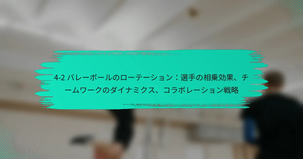 4-2バレーボールローテーションシステムは、4人のフロントロー選手と2人のセッターを組み込むことでチームのパフォーマンスを最適化するように設計されています。このフォーメーションは、効果的なボール配分を強調するだけでなく、選手間の相乗効果とコラボレーション戦略に大きく依存し、チームメイトがシームレスに協力してゲームプレイを向上させることを保証します。 4-2バレーボールローテーションシステムとは? 4-2バレーボールローテーションシステムは、4人のフロントロー選手と2人のセッターを利用するフォーメーションです。このセットアップはチームワークと選手間の相乗効果を強調し、効果的なボール配分と戦略的なプレーを可能にします。 4-2ローテーションの定義と概要 4-2ローテーションは、2人のセッターが交互にボールをセットし、4人の選手がフロントローを占めることが特徴です。このアプローチは、セッターがプレーに迅速に適応し、ボールを効果的に配分できるため、バランスの取れた攻撃戦略を可能にします。このフォーメーションは、強力なセッターと多才なアタッカーを持つチームに特に有益です。 このシステムは、そのシンプルさと効果的なため、若年層やアマチュアチームによってよく使用されます。選手が複雑なローテーションに圧倒されることなく、攻撃と防御の役割の両方でスキルを発展させることができます。 4-2ローテーションの主要な要素 2人のセッター:セッターの主な役割は、アタッカーに正確なセットを提供し、最適な得点機会を確保することです。 4人のフロントロー選手:これらの選手は、ネットでの攻撃、ブロック、防御を担当し、相手に対して強い存在感を示します。 バックロー防御:残りの選手は防御に集中し、バックローをカバーし、カウンターアタックの準備をします。 コミュニケーション:選手間の効果的なコミュニケーションは、プレー中の成功した実行と調整にとって重要です。 4-2ローテーションにおける選手の役割 4-2ローテーションでは、2人のセッターが攻撃を組織する重要な役割を果たします。彼らは機敏であり、状況を迅速に評価し、正確なセットを提供するための強い意思決定能力を持っている必要があります。フロントロー選手は通常、アウトサイドヒッターとミドルブロッカーで構成され、得点と防御に集中し、バックロー選手はサーブを受けたり、アタックを掘ったりすることに集中します。 各選手は自分の責任を理解し、チームのダイナミクスの中でどのようにフィットするかを把握する必要があります。たとえば、アウトサイドヒッターはセッターのポジショニングに基づいてヒッティングスタイルを調整する必要があるかもしれませんし、バックロー選手は機会があれば攻撃に移行する準備をしておくべきです。 4-2ローテーションを使用する利点 4-2ローテーションは、チームワークとコラボレーションの向上を含むいくつかの利点を提供します。2人のセッターを持つことで、チームは一貫した攻撃の流れを維持でき、相手がプレーを予測するのが難しくなります。このシステムは、選手が攻撃と防御の役割を頻繁に切り替えるため、多様なスキルセットを発展させることも可能です。 さらに、4-2ローテーションは新しい選手にとって学習曲線を簡素化します。習得すべきポジションが少ないため、選手は基本的なスキルに集中でき、特に若いチームや経験の少ないチームにとって有益です。 4-2ローテーションで直面する一般的な課題 利点がある一方で、4-2ローテーションには課題もあります。一般的な問題の一つは、セッターとヒッター間の誤コミュニケーションの可能性であり、これが効果的なプレーにつながることがあります。チームはこのリスクを軽減するために、強いコミュニケーションスキルの開発を優先する必要があります。 もう一つの課題は、セッターへの依存です。一人のセッターのパフォーマンスが良くない場合、チーム全体の効果に大きな影響を与える可能性があります。コーチは、両方のセッターが均等にトレーニングと練習時間を受けることを確保し、バランスを維持する必要があります。 選手の相乗効果は4-2ローテーションにどのように影響しますか? 選手の相乗効果は、コラボレーションを促進し、全体的なチームパフォーマンスを向上させることで、4-2バレーボールローテーションの効果を大いに高めます。選手が調和して働くと、互いの動きを予測できるようになり、より良い意思決定と実行につながります。 バレーボールにおける選手の相乗効果の理解 バレーボールにおける選手の相乗効果は、チームメイト間のシームレスなコラボレーションを指し、彼らの結束した努力が個々のパフォーマンスよりも大きな成果をもたらします。この相乗効果は、2人のセッターが攻撃と防御のプレーに積極的に関与する4-2ローテーションでは特に重要です。効果的な相乗効果により、選手はゲームを