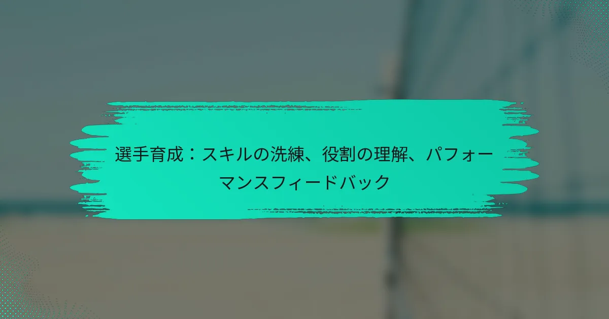 選手育成は、アスリートのスキル、役割の理解、全体的なパフォーマンスを向上させることを目的とした包括的な戦略であり、集中したトレーニングと建設的なフィードバックを通じて実現されます。特定の能力を磨き、個々の責任を明確にすることで、選手はチームへの貢献を高め、最終的にはフィールドでの成功につながります。 選手育成とは何か、そしてなぜ重要なのか? 選手育成とは、ターゲットを絞ったトレーニングとフィードバックを通じて、アスリートのスキル、役割の理解、パフォーマンスを向上させる体系的なアプローチを指します。これは、個々の潜在能力を最大限に引き出し、チーム全体の成功を促進するために重要です。 スポーツにおける選手育成の定義 スポーツにおける選手育成は、アスリートの能力とポジションの理解を向上させることを目的としたさまざまな戦略を含みます。このプロセスには、スキルの洗練、役割の理解、パフォーマンスフィードバックの受け取りが含まれ、継続的な成長を確保します。これは、アスリートの旅の身体的および精神的側面の両方を考慮したホリスティックなアプローチです。 効果的な選手育成は、単に技術的なスキルだけでなく、戦術的な認識や心理的な準備も含まれます。アスリートはさまざまなゲーム状況に適応することを学び、意思決定能力やプレッシャー下でのレジリエンスを高めます。この包括的なトレーニングは、競技スポーツの課題に備えるためのものです。 効果的な選手育成の主要な要素 スキルの洗練:パフォーマンスを向上させるための特定の技術に集中した練習。 役割の理解:チーム内での期待と責任を明確に伝えること。 パフォーマンスフィードバック:改善を導くための定期的な評価と建設的な批評。 身体的コンディショニング:アスリートが最高の状態であることを確保するためのカスタマイズされたフィットネスプログラム。 メンタルトレーニング:自信、集中力、レジリエンスを高めるための戦略。 各要素は、バランスの取れたアスリートを育成する上で重要な役割を果たします。スキルの洗練は、選手が技術を効果的に実行できるようにし、役割の理解はチームダイナミクスに意味のある貢献をするのに役立ちます。パフォーマンスフィードバックは、継続的な改善の文化を育みます。 選手育成のアスリートへの利点 選手育成は、パフォーマンスの向上、自信の増加、ゲームへの理解の深化など、アスリートに多くの利点を提供します。アスリートがスキルを磨くにつれて、役割においてより有能で能力のある存在となり、フィールドでの結果が向上します。 さらに、構造化された育成プログラムは、アスリートの自信を高め、能力の具体的な改善を実感させることができます。この自信は、試合中の意思決定を向上させ、全体的なパフォーマンスを高めます。 また、効果的な選手育成に取り組むアスリートは、スポーツでの長期的なキャリアを維持する可能性が高くなります。スキルと理解を継続的に進化させることで、ゲームの変化に適応し、競争力を保つことができます。 選手育成がチームパフォーマンスに与える影響 選手育成は、各メンバーが自分の役割と責任を理解する統一されたユニットを作ることで、チームパフォーマンスに大きな影響を与えます。アスリートが十分に育成されていると、戦略をより効果的に実行でき、フィールド上でのチームワークとシナジーが向上します。 選手育成を優先するチームは、選手間のコミュニケーションとコラボレーションが向上することがよくあります。これにより、ゲームの実行が改善され、勝率が向上する可能性があります。強力な育成文化を持つチームは、才能を引き寄せ、保持する傾向があり、競争力をさらに強化します。 さらに、個々の選手が成長すると、チーム全体のスキルレベルが上昇し、より複雑な戦略やプレーが可能になります。この適応力は、チームが相手の戦術に迅速に対応しなければならない高リスクの状況で重要です。 選手育成に関する一般的な誤解 一般的な誤解の一つは、選手育成はコーチの責任だけであるということです。実際には、アスリート自身が自分の育成に積極的に関与し、フィードバックを求め、構造化された練習の外でも必要な努力をする必要があります。 もう一つの誤解は、選手育成は単に身体的なトレーニングに関するものであるということです。身体的なスキルは重要ですが、メンタルおよび戦術的なトレーニングも包括的な成長には同様に不可欠です。アスリートは、試合中に迅速な意思決定を行うために認知スキルを発展させる必要があります。 最後に、選手育成は一度きりのプロセスであると考える人もいます。実際には、これは継続的な努力と適応を必要とする旅であり、アスリートはキャリアを通じて育成にコミットし続ける必要があります。 スキルの洗練が選手のパフォーマンスをどのように向上させるか? ス